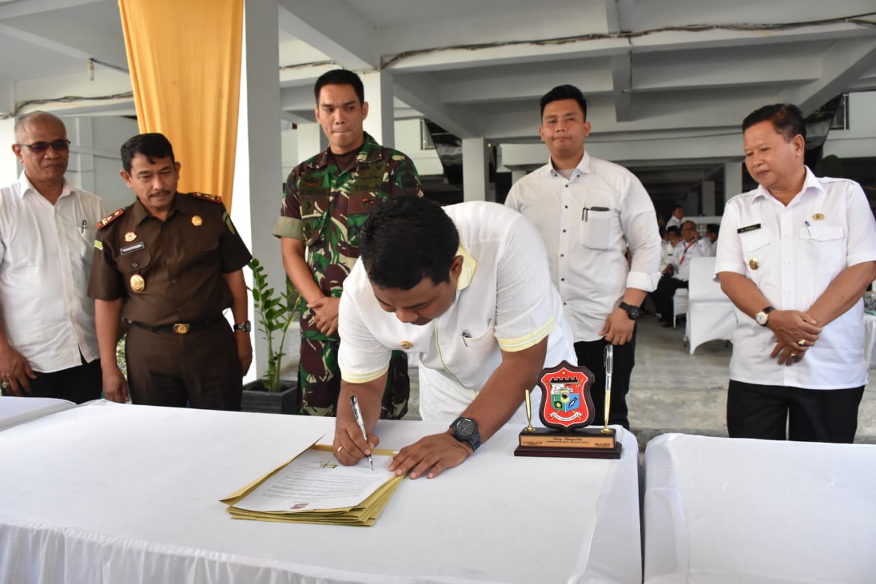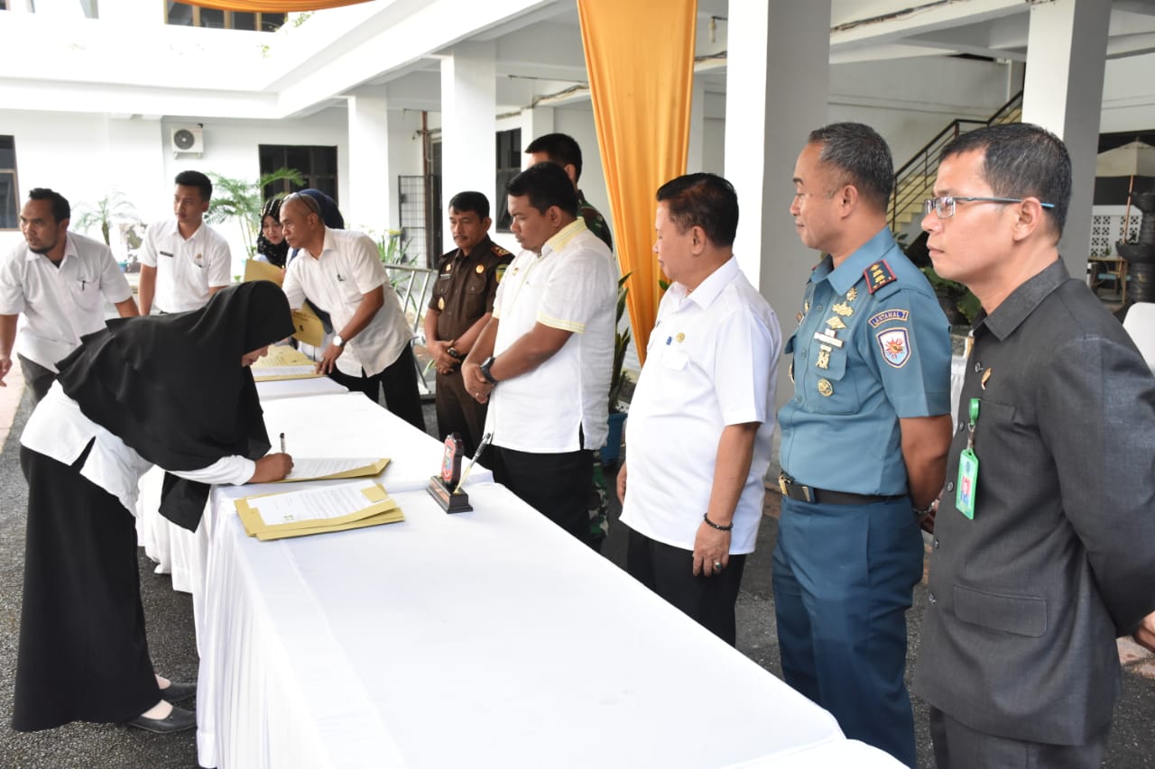 Wali Kota Tanjungbalai H.M Syahrial SH,MH didampingi Wakil Wali Kota Drs.H Ismail dan Forkopimda Kota Tanjungbalai menyaksikan Penandatanganan Fakta Integritas para Pejabat Esselon III dan IV dilingkungan Pemko Tanjungbalai di Halaman Kantor Wali Kota (Rabu, 26/12/2018). Acara yang dilaksanakan oleh