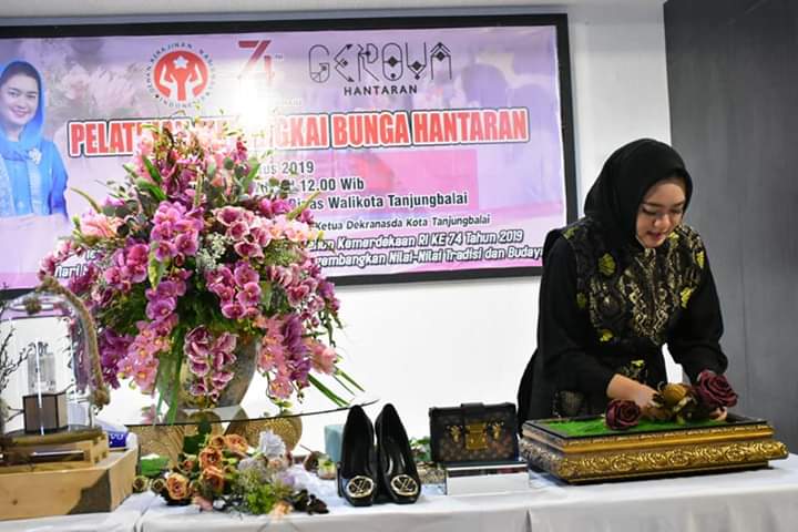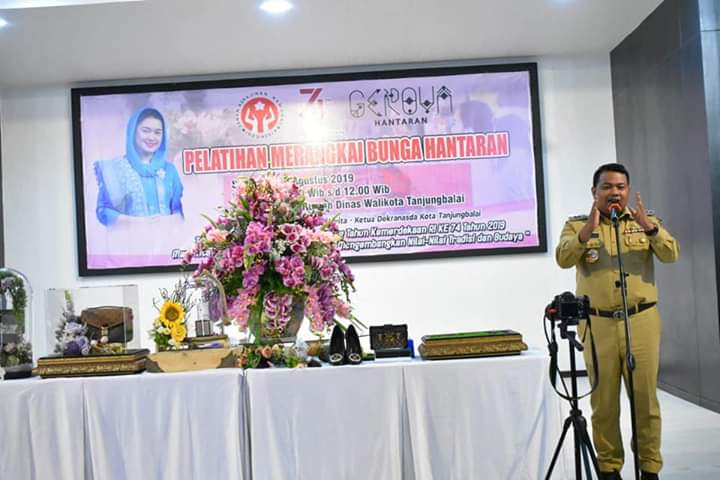 Dewan Kerajinan Nasional Daerah (Dekranasda) Kota Tanjungbalai bersama “Gerova Hantaran” menggelar Pelatihan Merangkai Bunga Hantaran di Pendopo rumah dinas Wali Kota (Senin, 19/8/2019). Kegiatan yang bertemakan “Dengan semangat Hari Ulang Tahun Kemerdekaan Ke-74 RI tahun 2019, mari kita tingkatkan. kreatifitas dengan mengembangkan nilai-nilai tradisi dan budaya” dibuka langsung oleh Wali Kota Tanjungbalai H.M Syahrial SH,MH