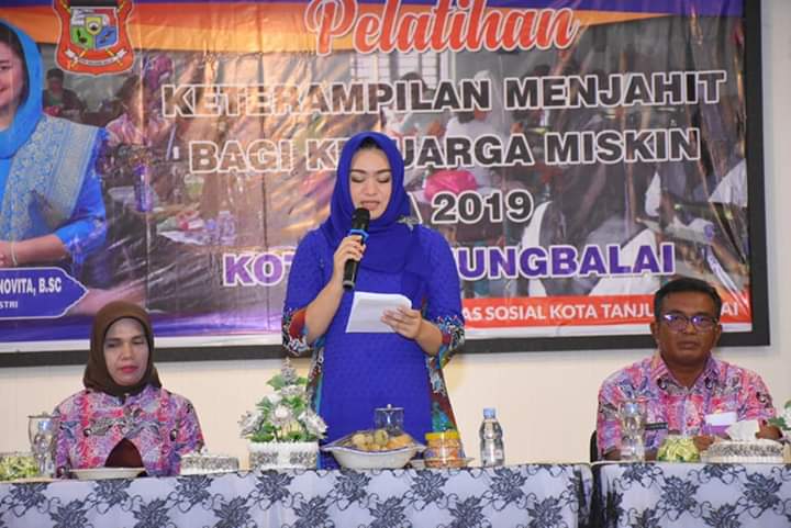 Ketua Tim Penggerak Pembinaan Kesejahteraan Keluarga (TP.PKK) Kota Tanjungbalai Hj. Sri Silvisa Novita Syahrial membuka secara resmi pelatihan menjahit dan Merangkai Hantaran Pengantin yang diselenggarakan Dinas Sosial Kota Tanjungbalai, di Pendopo Rumah Dinas Wali Kota , kamis (Kamis, 21/3/2019).