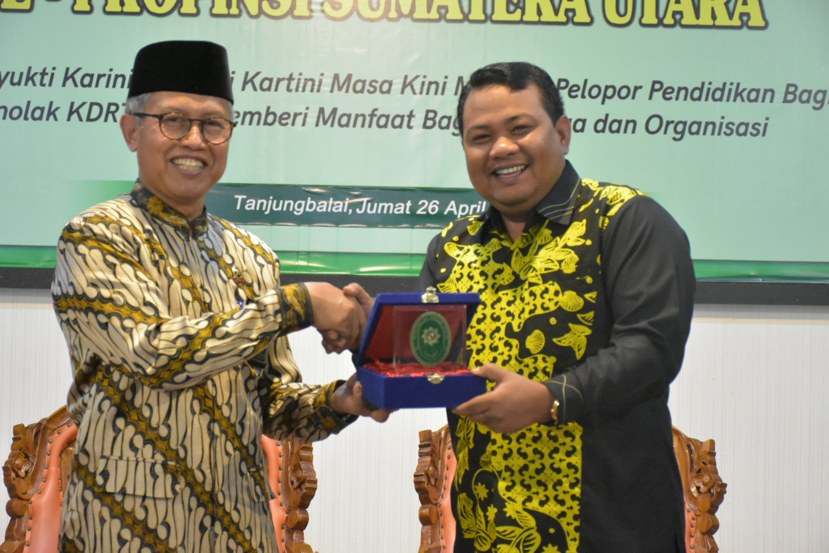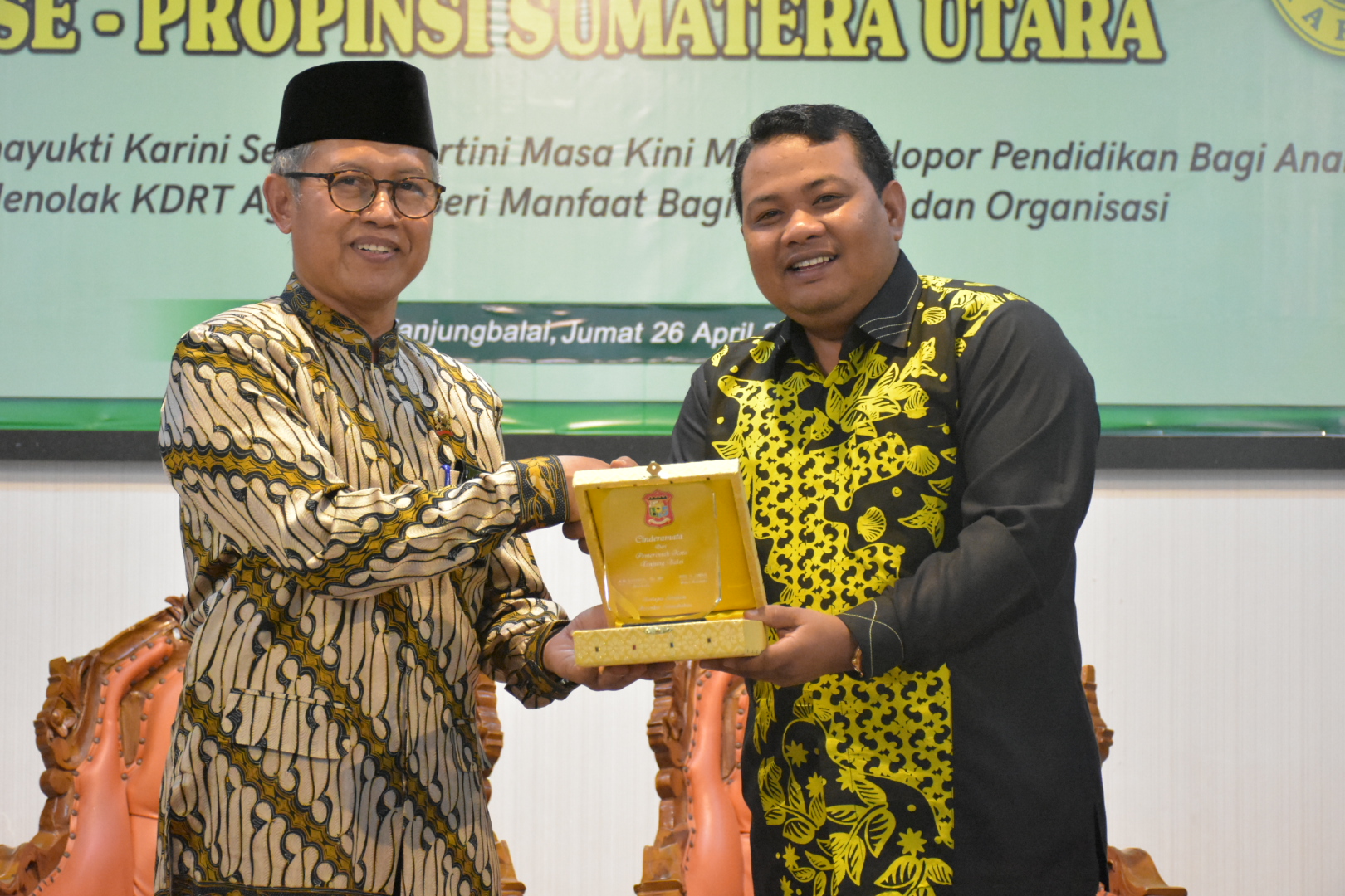 Acara diakhiri dengan Pemberian Cenderamata berupa Batik Kito yang merupakan Produk Unggulan Kota Tanjungbalai dan Plakat dari Wali Kota kepada Ketua Pengadilan Tinggi Sumut didampingi Ketua Dharmayukti Karini.