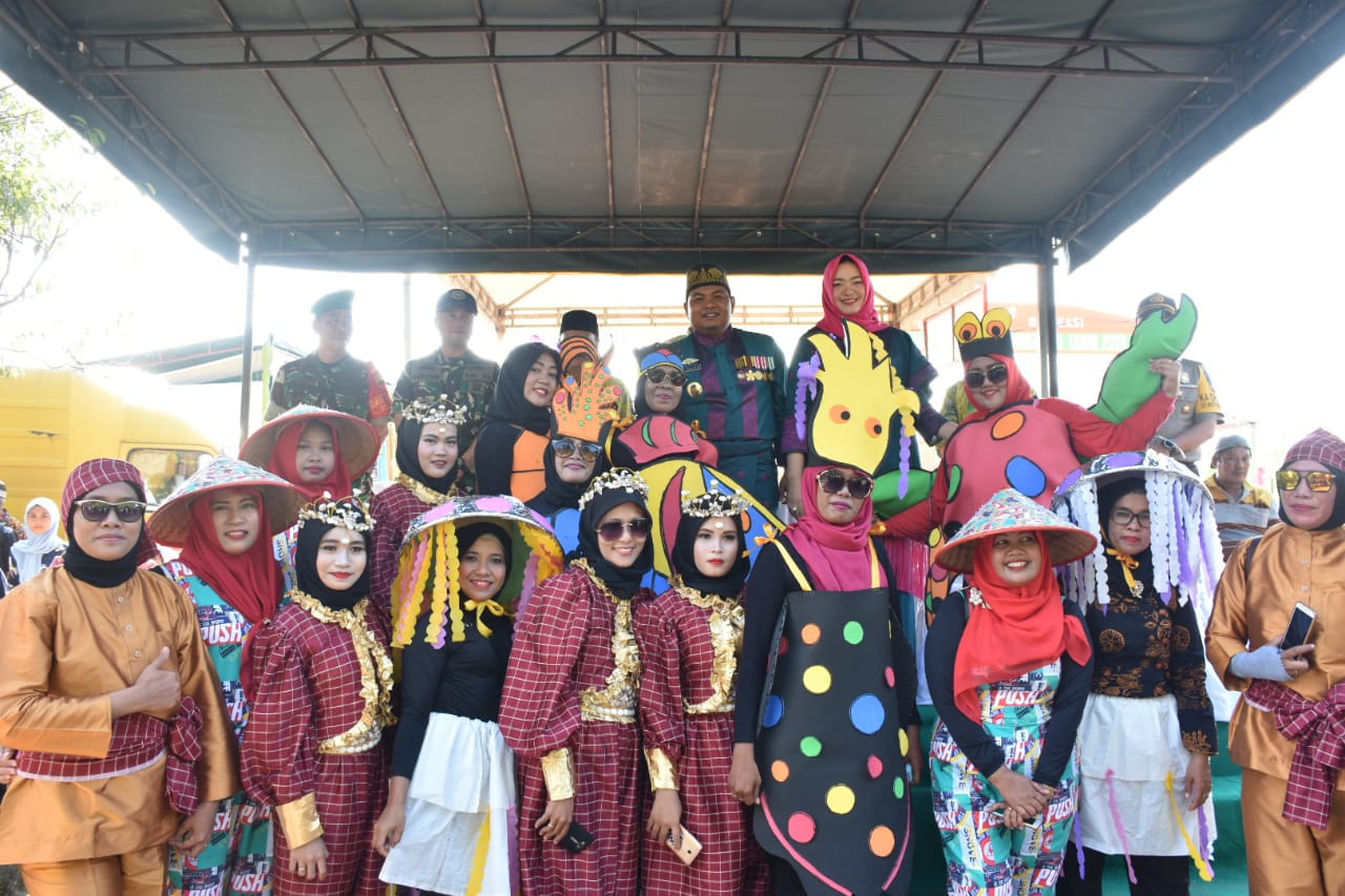 Wali Kota Tanjungbalai H.M Syahrial SH,MH didampingi Ketua TP.PKK Hj. Sri Silvisa Novita menyambut seluruh peserta pawai di Mimbar Kehormatan bersama Forkopimda Kota Tanjungbalai