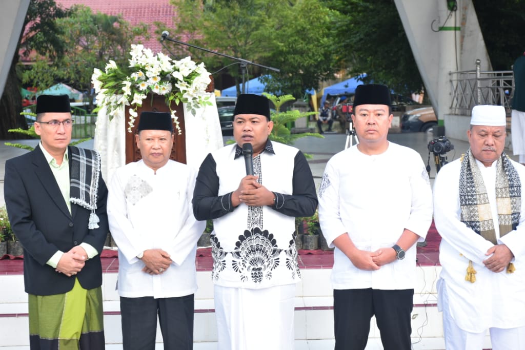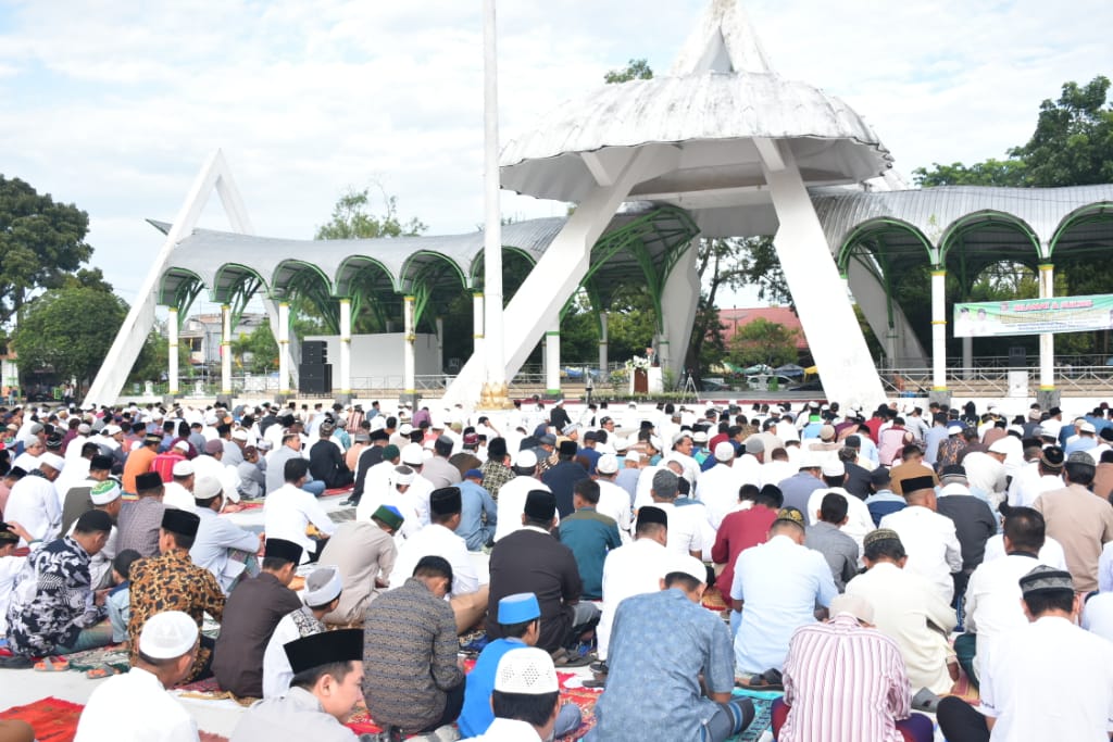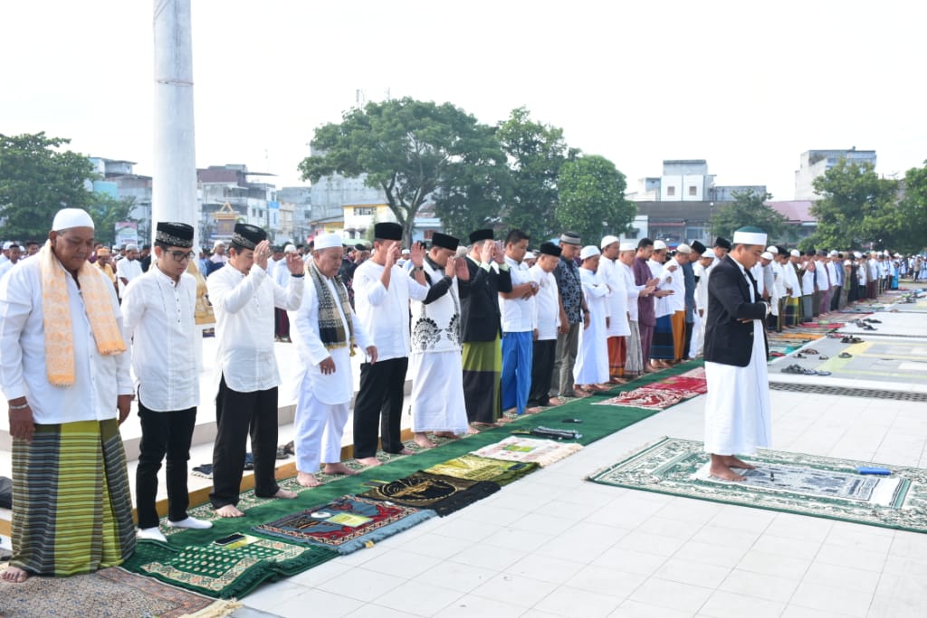 Hari raya Idul Adha 1440 H, Wali Kota Tanjungbalai H.M Syahrial SH,MH didampingi Istri Hj. Sri Silvisa Novita, Wakil Wali Kota Drs. H Ismail dan istri Hj. Syarifah melaksanakan sholat Idul Adha bersama ribuan masyarakat Tanjungbalai di Lapangan Sultan Abdul Jalil Rahmadsyah, Tanjungbalai, Minggu pagi (11/8/2019).