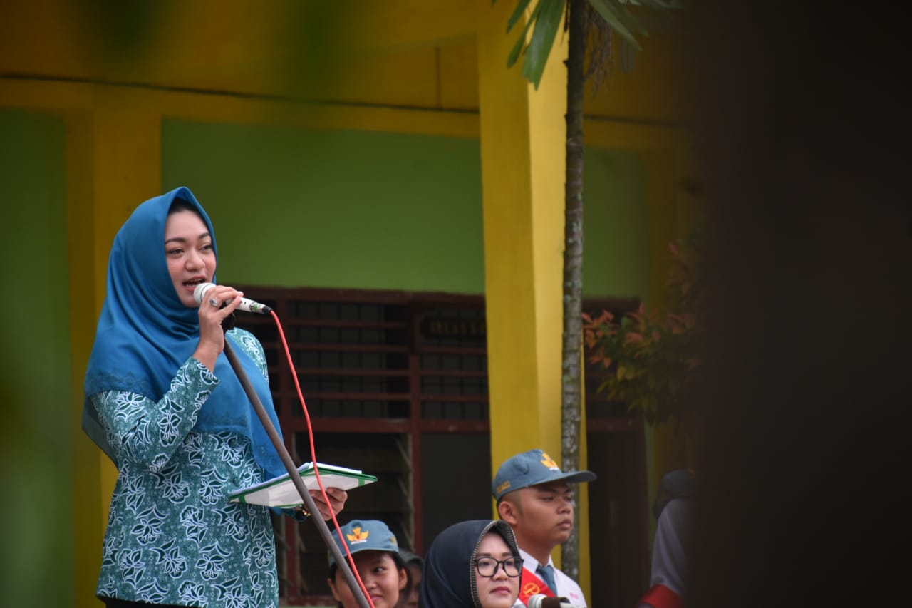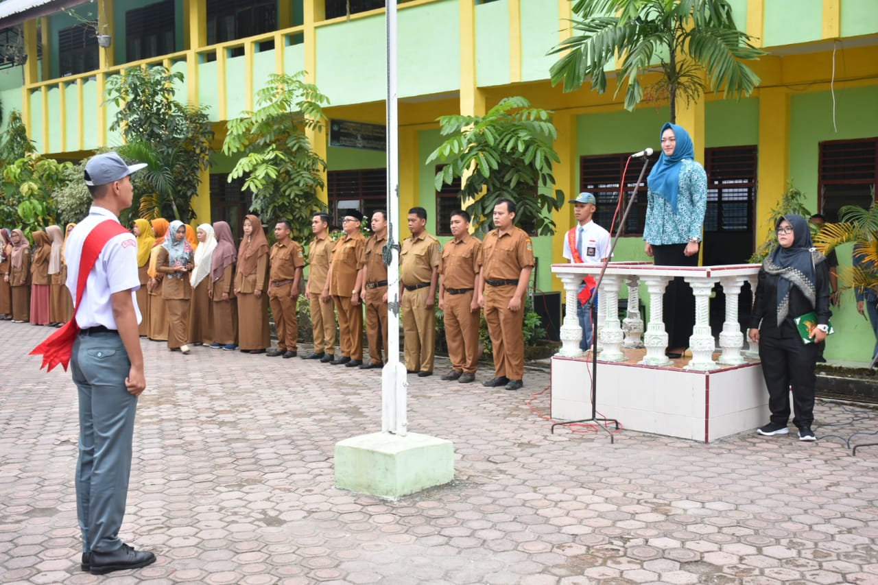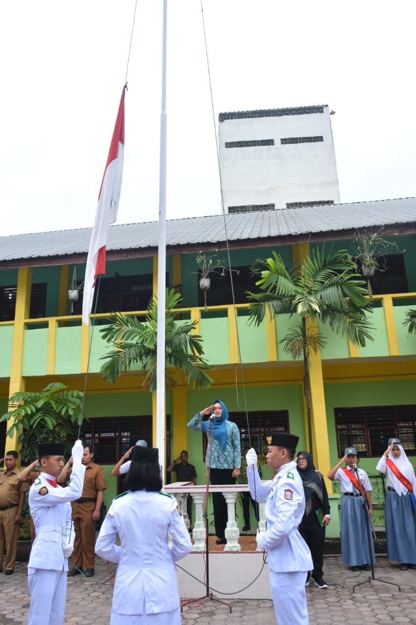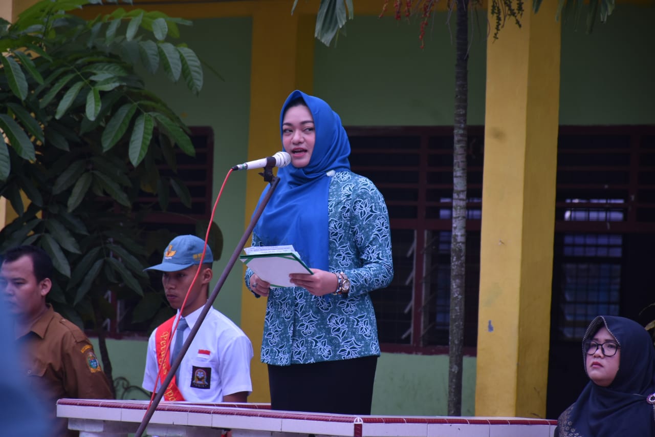 Sri Silvisa Novita Muhammad Syahrial saat menjadi Pembina Upacara di SMA Negeri 1 Tanjungbalai, Jl. M.T. Haryono, Kelurahan Karya, Tanjungbalai Selatan, Kota Tanjungbalai (Senin, 10/2/2020)
