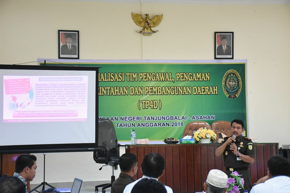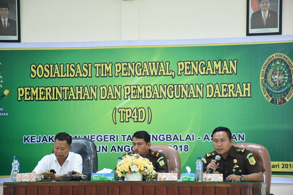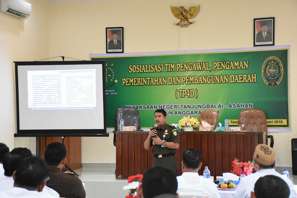 Kejaksaan Negeri (Kejari) Tanjungbalai menggelar Sosialisasi Tim Pengawal dan Pengaman Pemerintah dan Pembangunan (TP4D) (Rabu, 14/2/2018) di Aula Kantor Kejaksaan Negeri Tanjungbalai. Acara yang dibuka oleh Kajari Tanjungbalai Zullikar Tanjung SH,MH dan Wakil Walikota Drs.H.Ismail dihadiri seluruh jajaran Kepala Organisasi Perangkat Daerah (OPD) serta Camat se-Kota Tanjungbalai. Ketua TP4D Kejari yang juga Kasi Intel Kejari Tanjungbalai Hardiansyah dalam paparannya menyampaikan kehadiran TP4D merupakan paradigma baru dalam upaya pemberantasan korupsi.