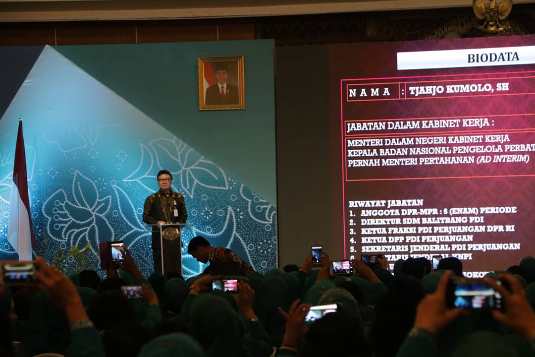 Menteri Dalam Negeri Tjahjo Kumolo membuka secara resmi Rapat Koordinasi Nasional (Rakornas) yang diikuti Ketua Ketua TP-PKK Provinsi, Ketua TP-PKK Kabupaten/Kota serta Dinas PMD Provinsi se-Indonesia.