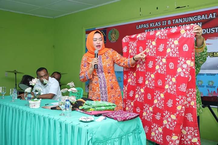 Ketua TP PKK yang juga Ketua Dekranasda Tanjungbalai Ny. Hj. Sri Silvisa Novita Muhammad Syahrial didampingi Kadis Pemberdayaan Perempuan dan Perlindungan Anak Dra. Darul Yana Siregar, Kabid Perindustrian Irmalinda Siahaan pada Perdagangan dan Perindustrian dan Pengurus TP.PKK Kota Tanjungbalai memberikan Pelatihan Keterampilan dan Pembinaan Mandiri Membatik dan Kerajinan Kulit Kerang kepada Warga Binaan Lapas Kelas IIB Pulau Simardan Tanjungbalai (Jumat, 26/10/2018).