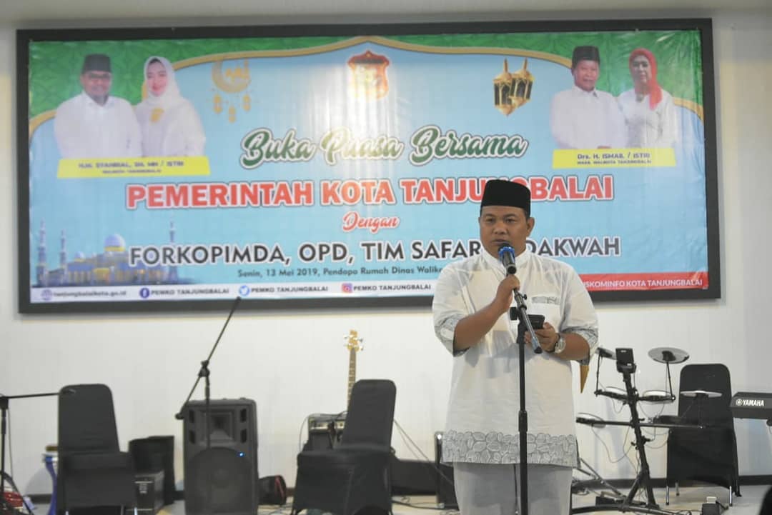 Pemerintah Kota Tanjungbalai hari ini menggelar buka puasa bersama dengan Forum Koordinasi Pimpinan Daerah (Forkopimda), Organisasi Perangkat Daerah (OPD) dan tim safari ramadhan jelang dilaksanakannya Safari Ramadhan mengunjungi 12 Masjid/Musholla yang berada di Kecamatan Teluk Nibung,Tanjungbalai (Senin, 13/5/2019) di Pendopo Rumah Dinas Wali Kota Tanjungbalai. Acara yang dihadiri Wali Kota Tanjungbalai H.M Syahrial SH,MH didampingi Ketua TP. PKK Hj Sri Silvisa Novita, Wakil Wali Kota Drs.H Ismail beserta istri Hj. Syarifah, Forkopimda, Plh Seketaris Daerah Halmayanti SH, Para Asisten, OPD, Camat, Tokoh Agama serta para undangan lainnya.