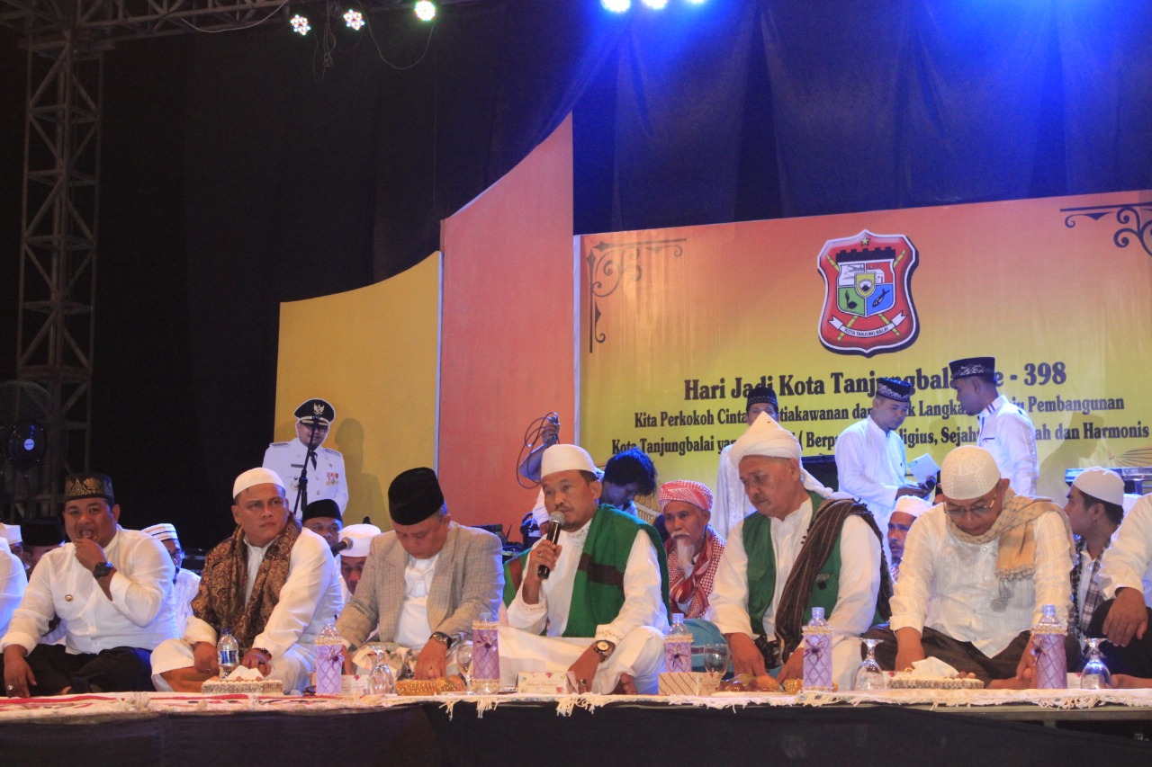 Penutupan Hari Jadi Kota Tanjungbalai Ke-398 yang digelar Pemko Tanjungbalai malam hari ini sangat berbeda dari tahun sebelumnya, Pemko Tanjungbalai melaksanakannya dalam nuansa berbeda dengan Kegiatan Keagamaan mengingat akhir-akhir ini berbagai ujian dan cobaan melanda berbagai daerah di Negara yang kita Cintai ini. Kita Senantiasa bermohon kepada Allah SWT, Tuhan YME agar Kota Tanjungbalai yang kita cintai ini terhindar dari segala bentuk ujian, cobaan dan musibah. Mari kita bersama Berdzikir, bermuhasabah dan nendengarkan lantunan kalimat-kalimat Toyyibah serta Tausyiah. Mari kita bersama mendoakan saudara kita yang tertimpa musibah agar Sabar, tabah dan ikhlas, Ujar Wali Kota
