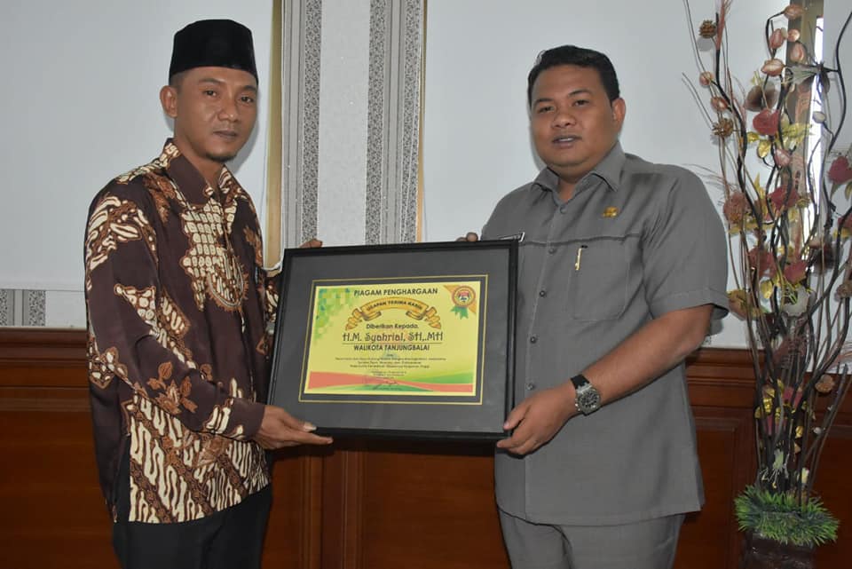 Diakhir acara Direktur Poltan Budi Darma menyerahkan Piagam Penghargaan Ucapan terima kasih dari Politeknik Tanjungbalai kepada Wali Kota Tanjungbalai H.M Syahrial atas dukungan dan kerjasama Pemerintah Kota Tanjungbalai yang terjalin selama ini.
