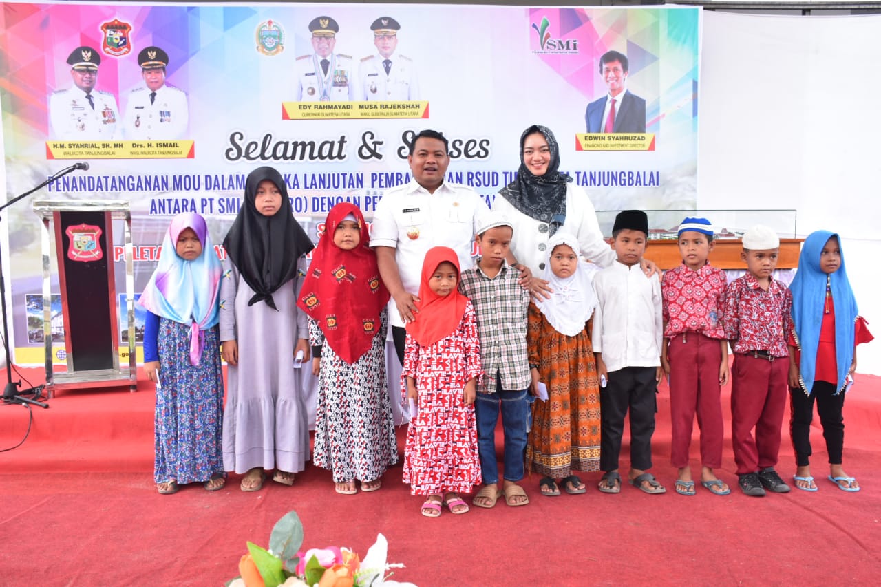 Usai acara penandatanganan MOU, Wali Kota Tanjungbalai didampingi Ketua TP. PKK Tanjungbalai Hj. Sri Silvisa Novita, Wakil Wali Kota Drs. H Ismail, Forkopimda, Tokoh Masyarakat, Tokoh Pemuda bersama Perwakilan PT SMI (Persero) melakukan Peletakan Batu sebagai pertanda lanjutan Pembangunan RSUD Tanjungbalai dan diakhiri dengan pemberian santunan kepada 100 anak Yatim.