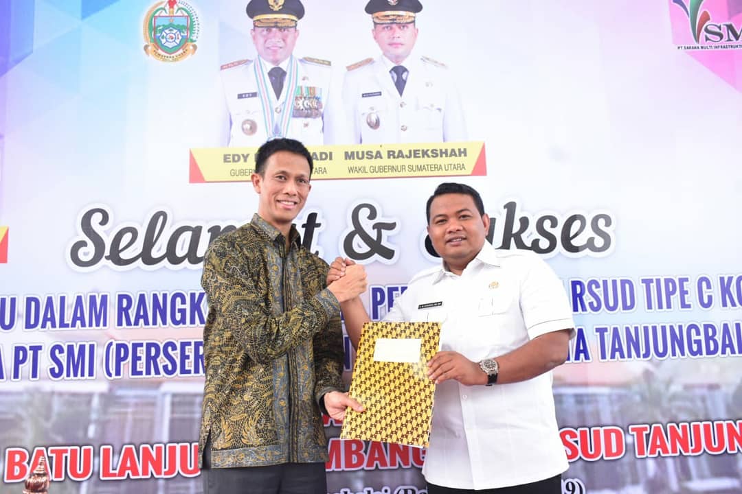 Harapan warga Tanjungbalai untuk memiliki RSUD segera terwujud menyusul penandatangan Perjanjian Kerja Sama (MoU) antara Pemko Tanjungbalai dengan PT Sarana Multi Infrakstruktur (SMI) di di halaman RSUD, Jalan Kartini, Kelurahan Pahang, Kecamatan Datuk Bandar, Tanjungbalai (Rabu, 15/5/2019). Penandatanganan MOU langsung dilakukan oleh Wali Kota Tanjungbalai H.M Syahrial SH,MH dan dari PT Sarana Multi Infrakstruktur (SMI) diwakili Direktur Pembiayaan dan Investasi Edwin Syahruzad.