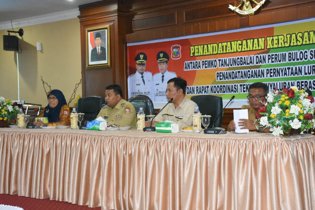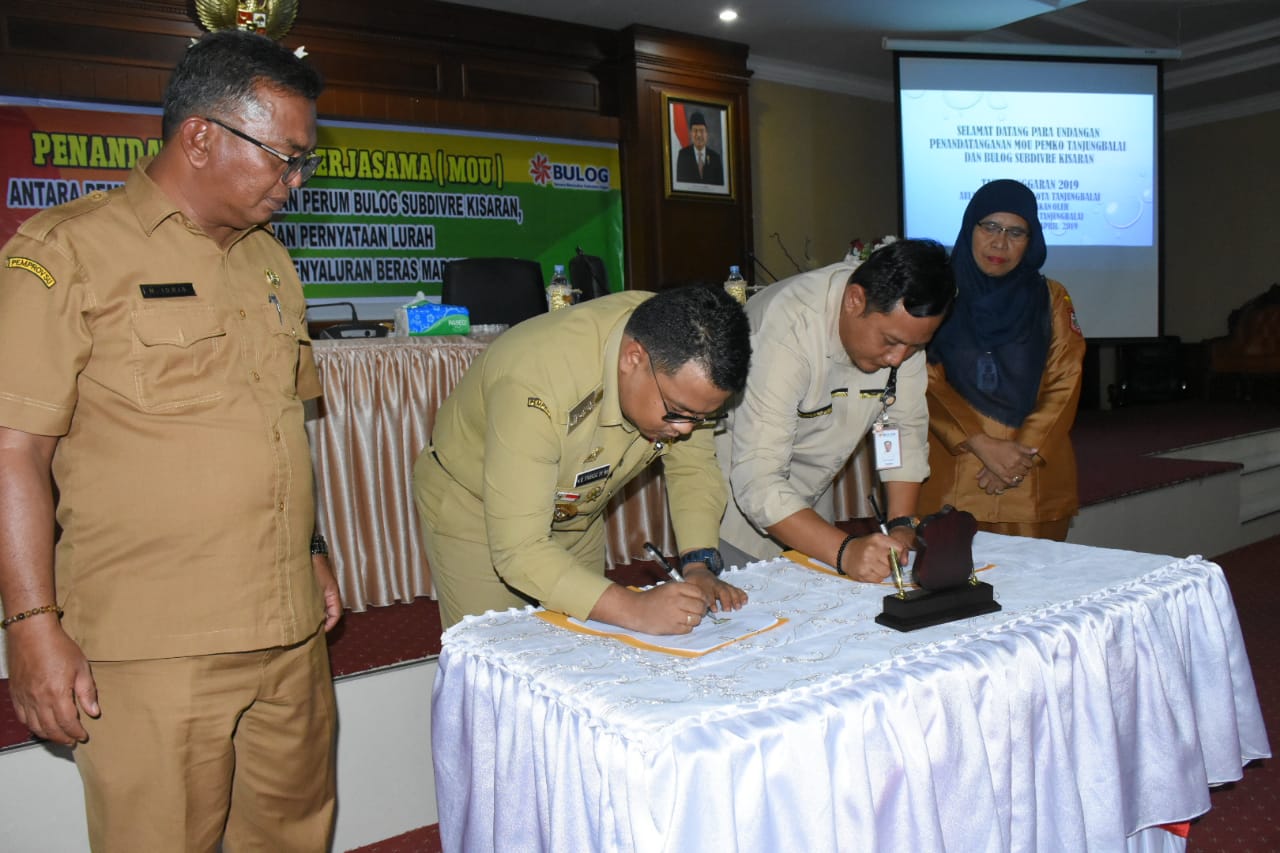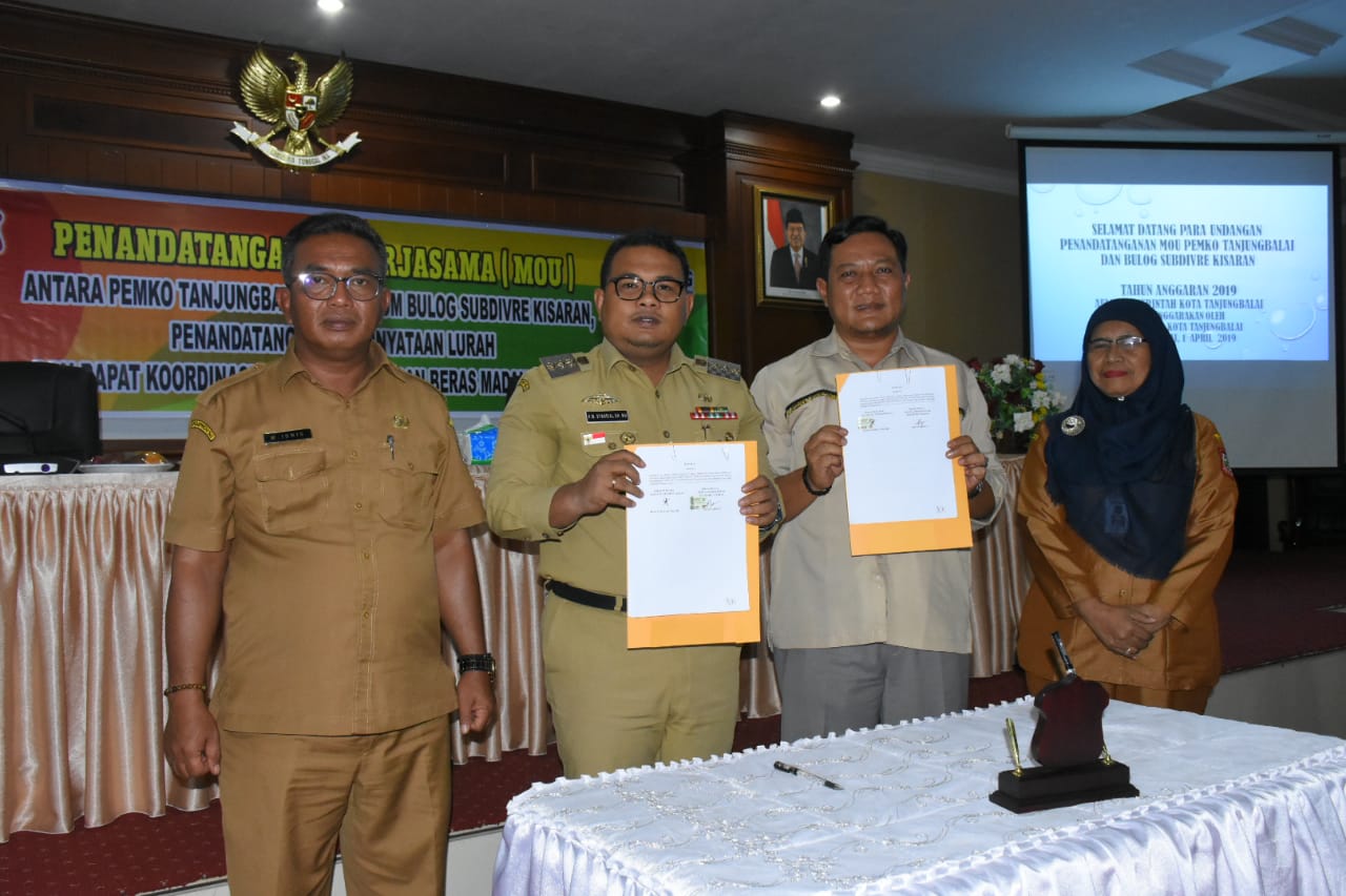 Wali Kota Tanjungbalai H.M Syahrial SH, MH menghadiri acara Penandatanganan Perjanjian Kerjasama (MOU) dengan Perusahaan Umum (Perum) Bulog Sub Divisi Regional (Sub Divre) Kisaran dalam rangka Pengadaan Beras Medium bagi masyarakat kurang mampu. Acara yang dilaksanakan di Aula I Kantor Wali Kota (Senin, 01/4/2019) dihadiri Kepala Perum Bulog Subdivre Kisaran Irfan Arfian, Plh. Seketaris Daerah Halmayanti SH, Kadis Sosial, Asisten, Kepala OPD, Camat, Lurah serta Kepala Lingkungan Se Kota Tanjungbalai.