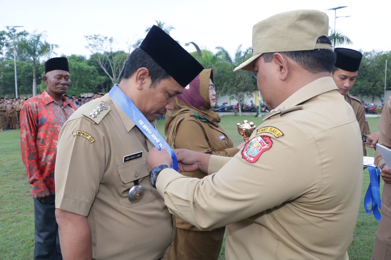 Walikota Tanjungbalai H.M Syahrial SH,MH pimpin Apel gabungan Pemerintah Kota Tanjungbalai yang dilaksanakan di halaman Kantor Wali Kota (Senin, 14/1/2019). Apel gabungan yang dihadiri Wakil Wali Kota Drs.H Ismail, Para Asisten, Staf Ahli, Kepala OPD, Camat, Lurah dan Kepala Lingkungan.