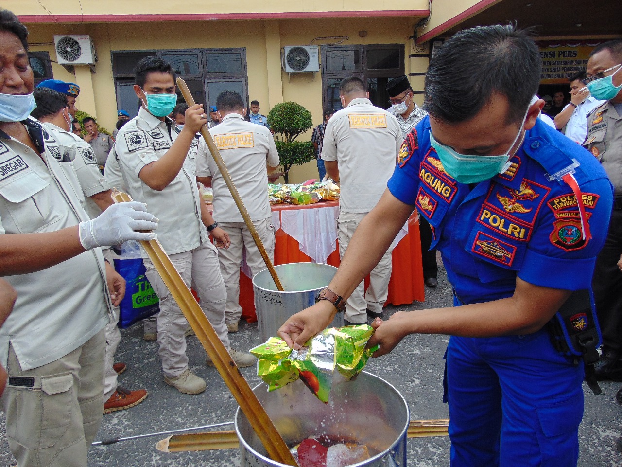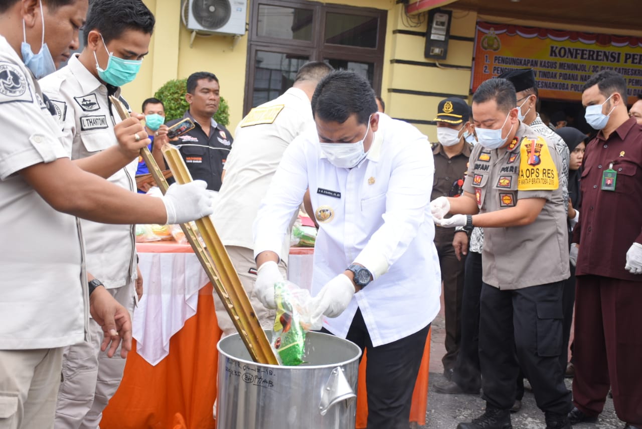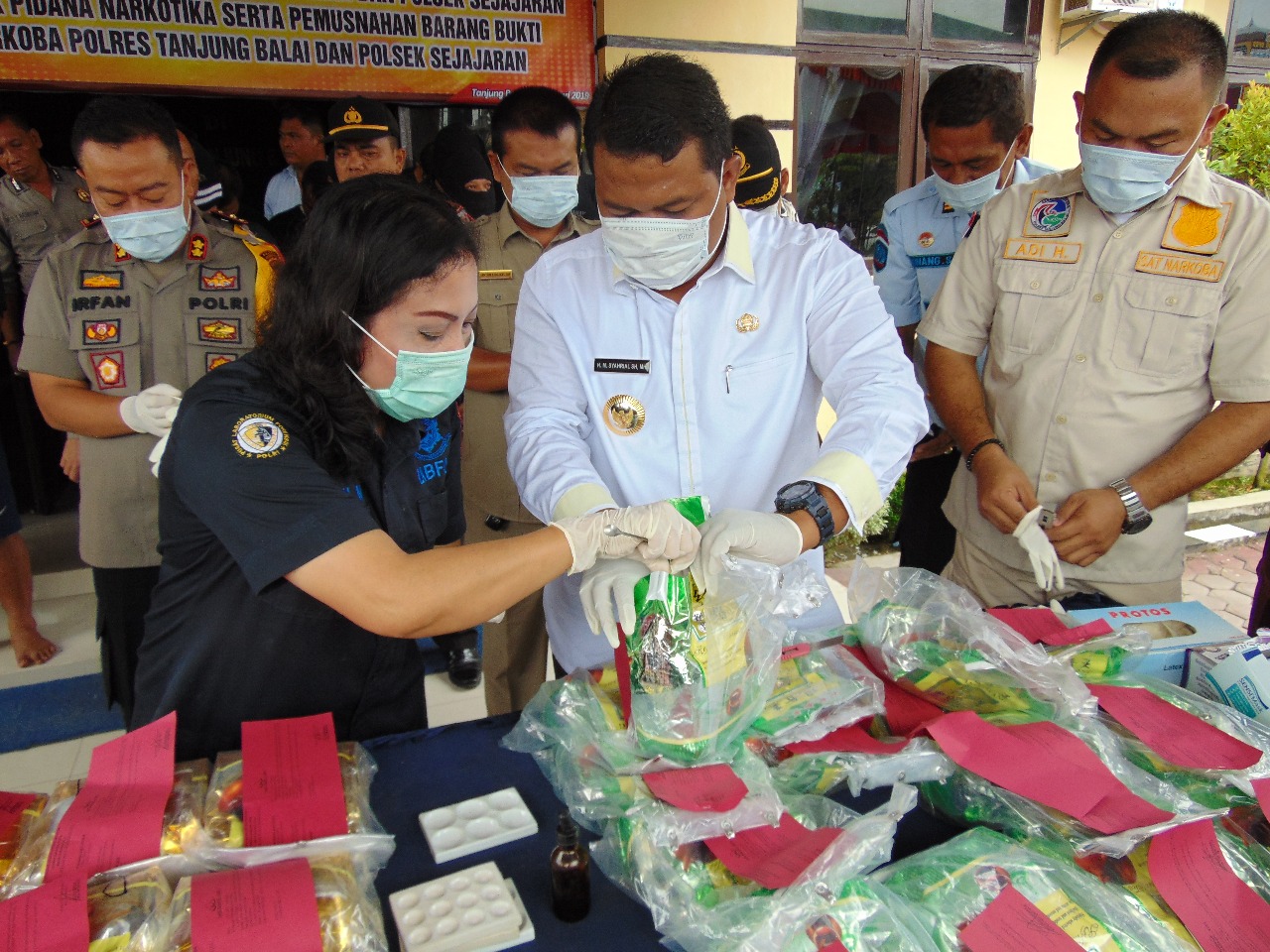 “Pemusnahan barang bukti ini telah mendapat persetujuan institusi terkait baik Kejaksaan mau pun Pengadilan Negeri Tanjungbalai,” kata Kasat Narkoba AKP. Adi Haryono.