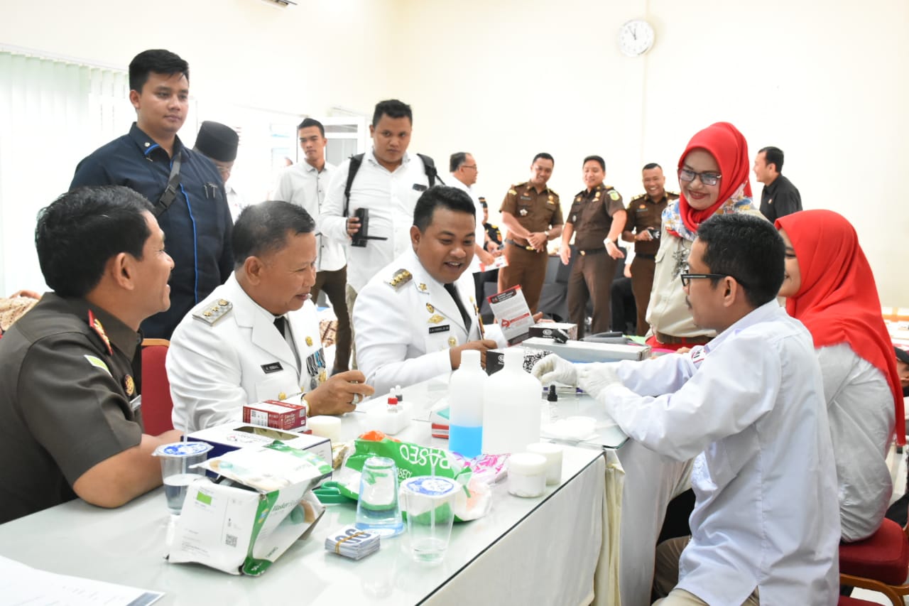 Wali Kota Tanjungbalai, H.M Syahrial SH,MH menghadiri kegiatan donor darah yang dilaksanakan oleh Kejaksaan Negeri (Kejari) Tanjungbalai dalam rangka menyambut peringatan Hari Bhakti Adhyaksa (HBA) ke 59 Tahun 2019 di aula Kejari setempat (Rabu,10/7/2019). Kegiatan Donor darah terselenggara atas kerjasama Palang Merah Indonesia (PMI) Cabang Tanjungbalai dan Kejari Tanjungbalai yang diikuti 45 orang terdiri dari Aparatur Sipil Negara (ASN) dan Masyarakat