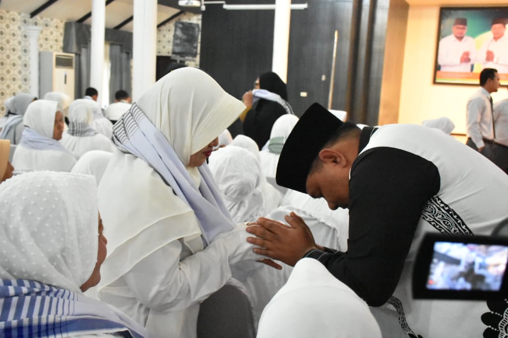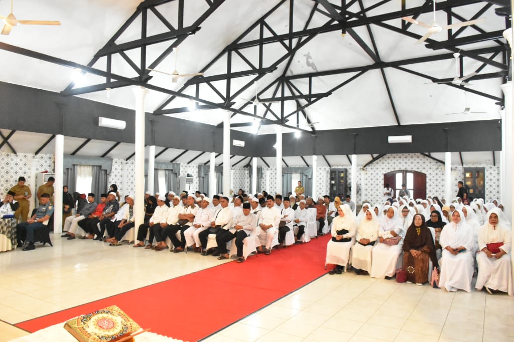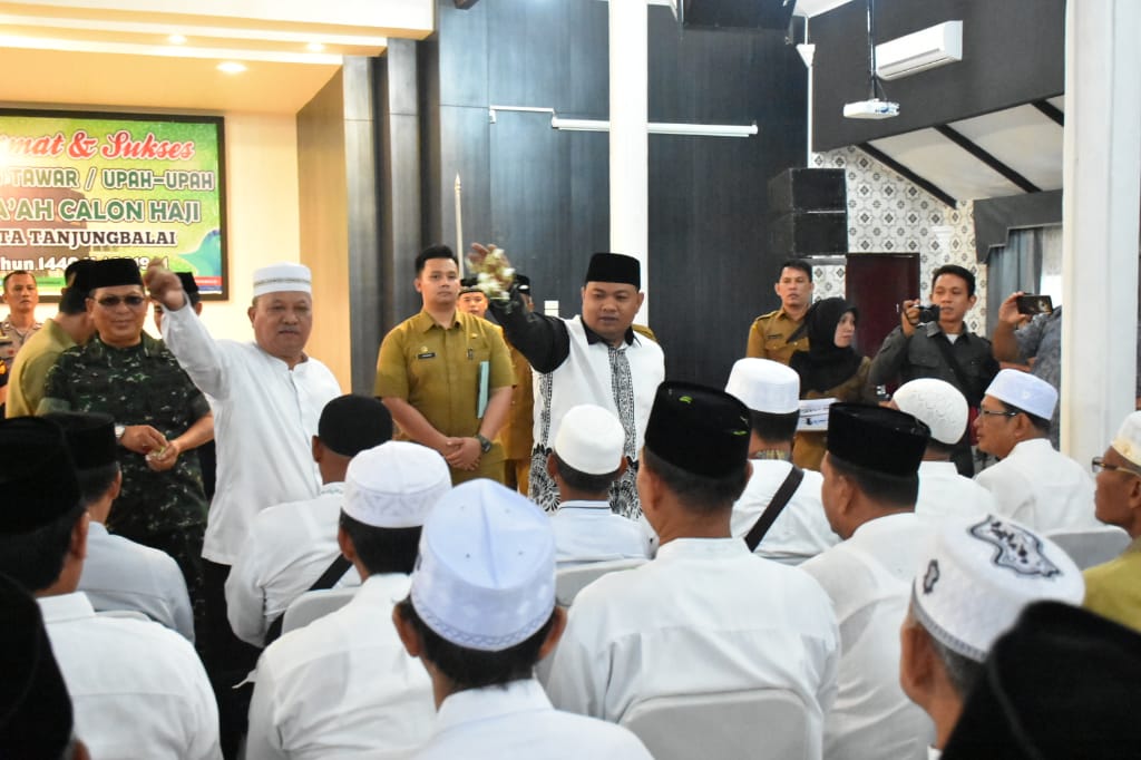 Wali Kota Tanjungbalai, H.M Syahrial SH,MH Tepung Tawari dan Upah Upah 177 Calon Jemaah Calon Haji Kota Tanjungbalai yang dilaksanakan di Pendopo Rumah Dinas Wali Kota, Senin (22/7/2019) Pagi
