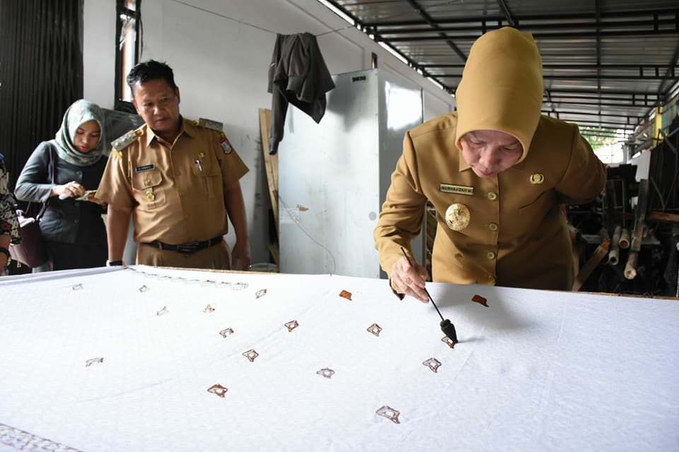 Selanjutnya Rombongan Wakil Gubernur didampingi Wakil Walikota melakukan kunjungan ke sentra Pengoncekan Kelapa, Produksi Batik dan Rumah Difabelitas.