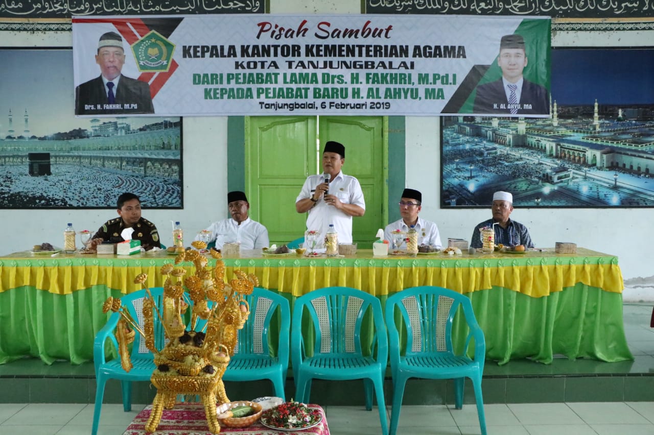 Kepada Kakan Kemenag Tanjungbalai yang baru H. Al Ahyu, MA, kami (Pemko) berharap dapat bekerja sama dalam membangun Kota. Saya juga menyampaikan kepada aparatur Kementerian Agama adalah Instansi terdepan dalam memberikan pendidikan agama, serta menyatukan masyarakat dari berbagai agama. Tugas itu sangat mulia dan setiap pekerjaan yang membawa kebajikan adalah ibadah.