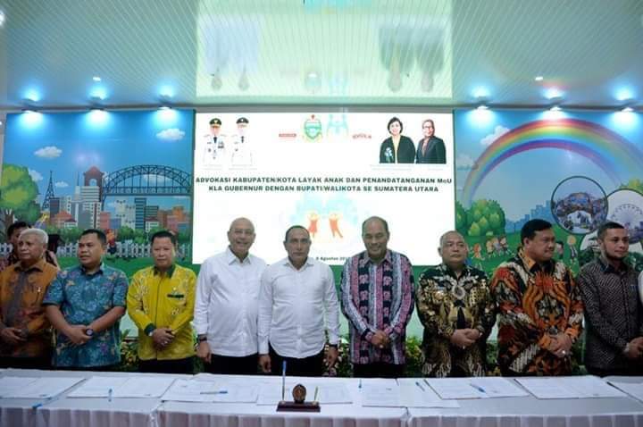 Dalam rangka mewujudkan Kota Layak Anak di Sumatera Utara, Seluruh daerah dari 33 kabupaten/kota se-Sumatera Utara (Sumut) berkomitmen untuk mewujudkan Kota Layak Anak (KLA). Hal itu ditandai dengan penandatanganan Nota Kesepahaman (MoU) 33 Bupati/Walikota se-Sumut dengan Gubernur Sumut Edy Rahmayadi, di Rumah Dinas Gubernur Sumut, Jalan Sudirman Nomor 41, Medan, Kamis (8/8).