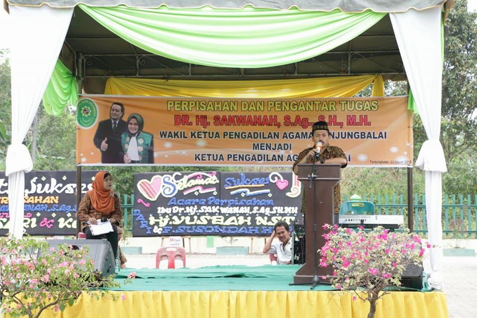 Wakil Ketua PA Tanjungbalai, Sakwanah mengungkapkan Terimakasih atas kehadiran dari semua yang hadir saat ini, terkhusus Wakil Walikota beserta seluruh jajaran Forkopimda tanjungbalai serta Jajaran Pejabat dan staf Pengadilan Agama kota tanjungbalai yang telah menerima saya dan bekerjasama selama saya bekerja dikota tanjungbalai.