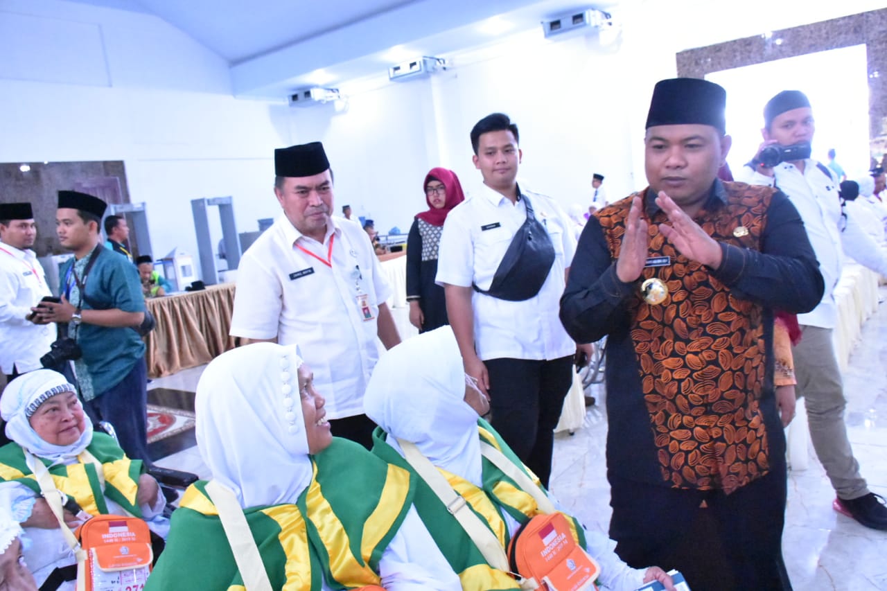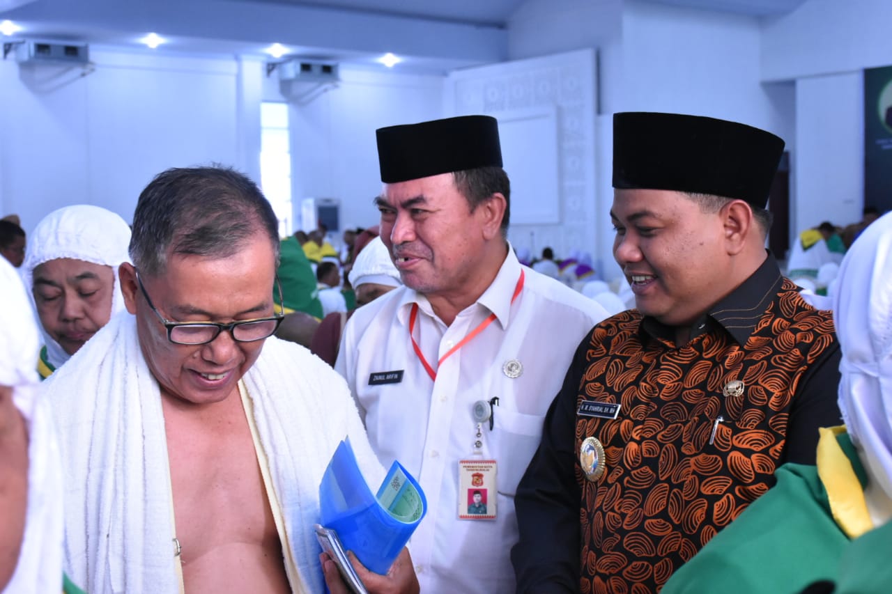 Wali Kota Tanjungbalai, H.M Syahrial SH,MH mendampingi 177 Jamaah Calon Haji (JCH) asal Kota Tanjungbalai di Asrama Haji, Medan sebelum diberangkatkan ke Bandara Kuala Namu menuju Jeddah, Arab Saudi malam ini menggunakan penerbangan GA 3119. Jamaah Calon Haji Kota Tanjungbalai bergabung dalam Kloter 19 Embarkasi Medan dengan JCH Kota Medan