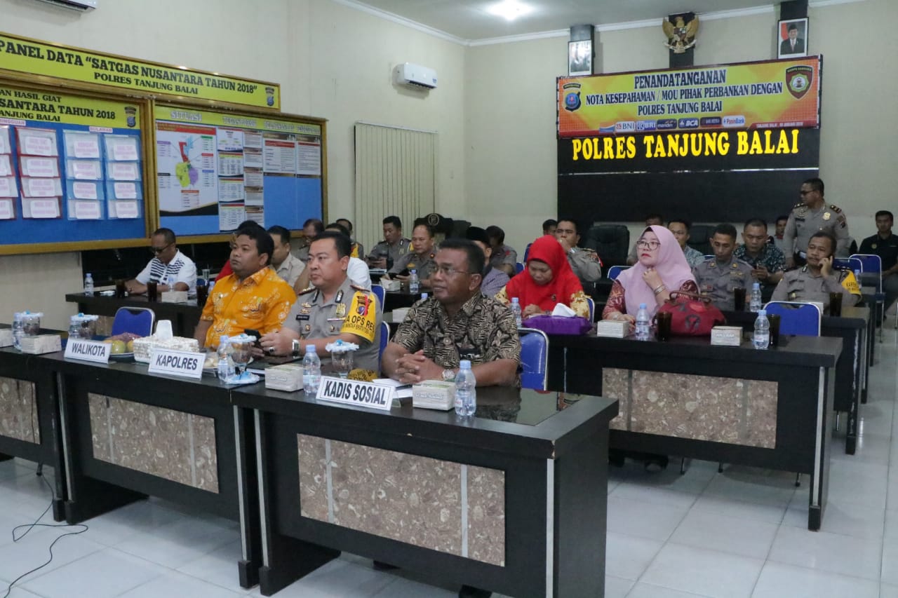 Bertempat di ruangan aula Pesat Gatra Mapolres Tanjungbalai, Wali Kota Tanjungbalai H.M Syahrial mengatakan bersama Kapolres Tanjungbalai AKBP Irfan Rifai,SH.S.I.K, Kadis Sosial M. Idris SH, serta Jajaran Polres Tanjungbalai mengikuti Video Conference (Vidcon) dalam rangka penandatangan Nota Kesepahaman Bersama dengan Menteri Sosial Dr Agus Gumiwang Kartasasmita M.Si (Jumat, 11/1/2018).