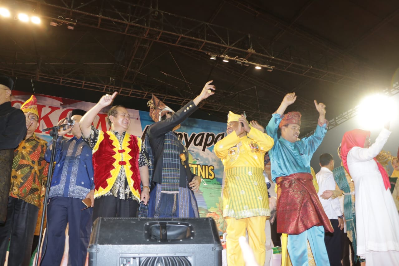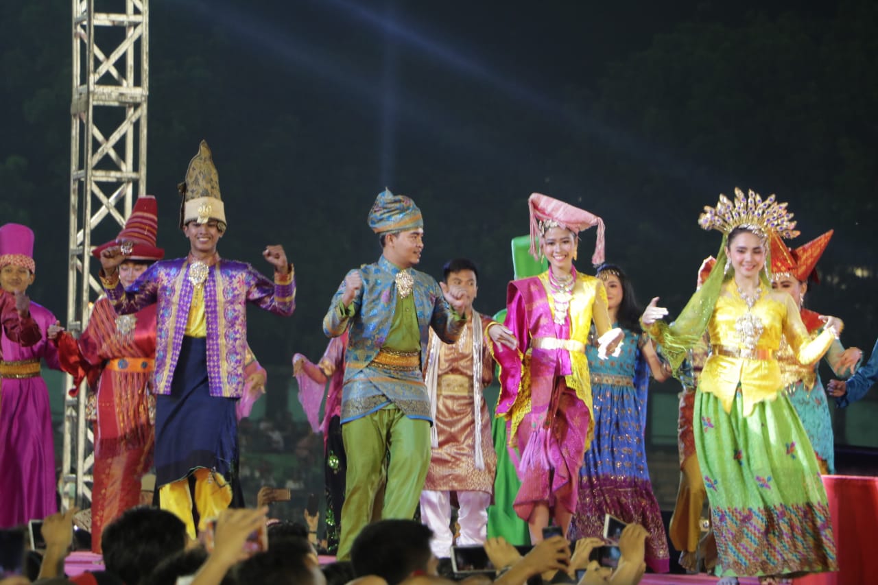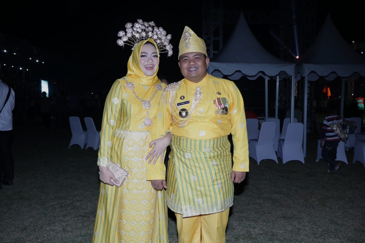Wali Kota Tanjungbalai H.M Syahrial SH,MH didampingi Istri Hj. Sri Silvisa Novita menghadiri Pagelaran Budaya Lintas Etnis Provinsi Sumatera Utara yang digelar di Stadion Teladan, Medan, Sabtu (16/3/2019) Malam. Wali Kota Tanjungbalai hadir mengenakan Baju Adat Melayu berwarna Kuning serasi dengan Istri Hj. Sri Silvisa Novita.