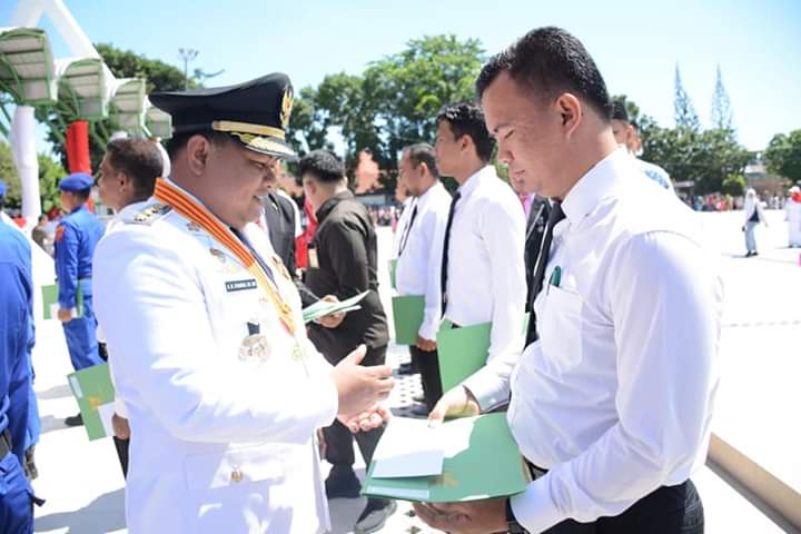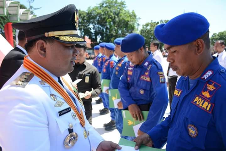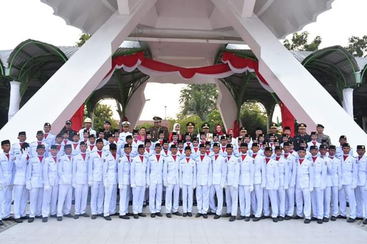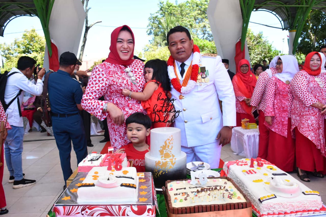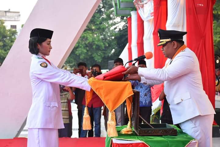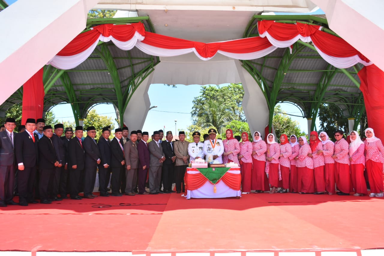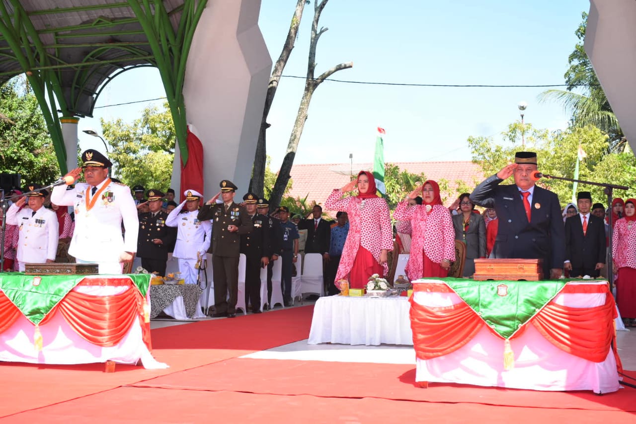 Tema HUT Ke-74 Kemerdekaan RI ” SDM Unggul Indonesia Maju “. Upacara yang diikuti oleh sejumlah elemen masyarakat antara lain dari unsur TNI, Polri, ASN, OKP dan Masyarakat.