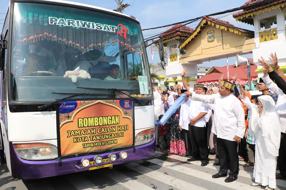 Sebanyak 113 orang Jamaah Calon Haji (Calhaj) asal Kota Tanjungbalai diberangkatkan menunaikan ibadah haji ke tanah suci Mekah. Para calhaj dilepas Wali Kota Tanjungbalai, HM Syahrial SH,MH didampingi Wakil Wali Kota Drs.H Ismail dari pendopo rumah dinas Wali Kota, menuju Asrama Haji Medan, Sabtu siang (28/7/2018).