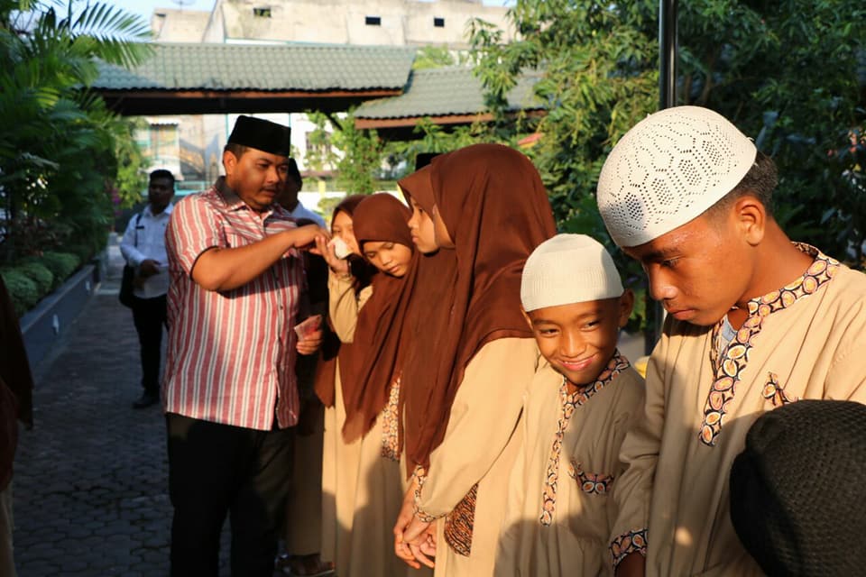 Pada kesempatan tersebut Walikota memberikan penali kasih kepada kurang lebih 22 anak yatim yang berasal dari Kecamatan Datuk Bandar Timur yang didampingi Camat Datuk Bandar Timur Waris Tholib serta Kepala Lingkungan.