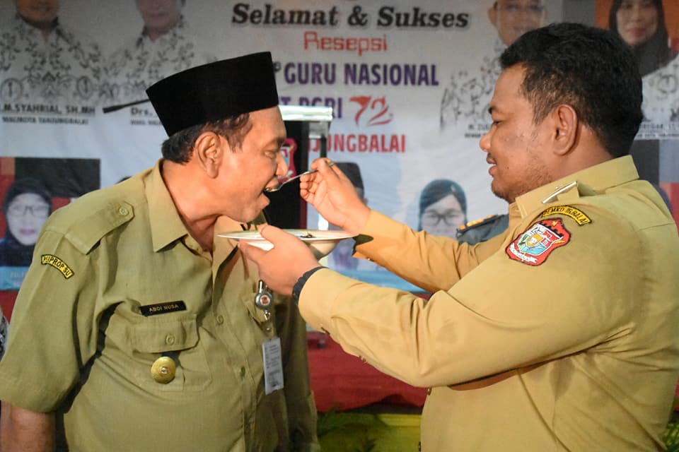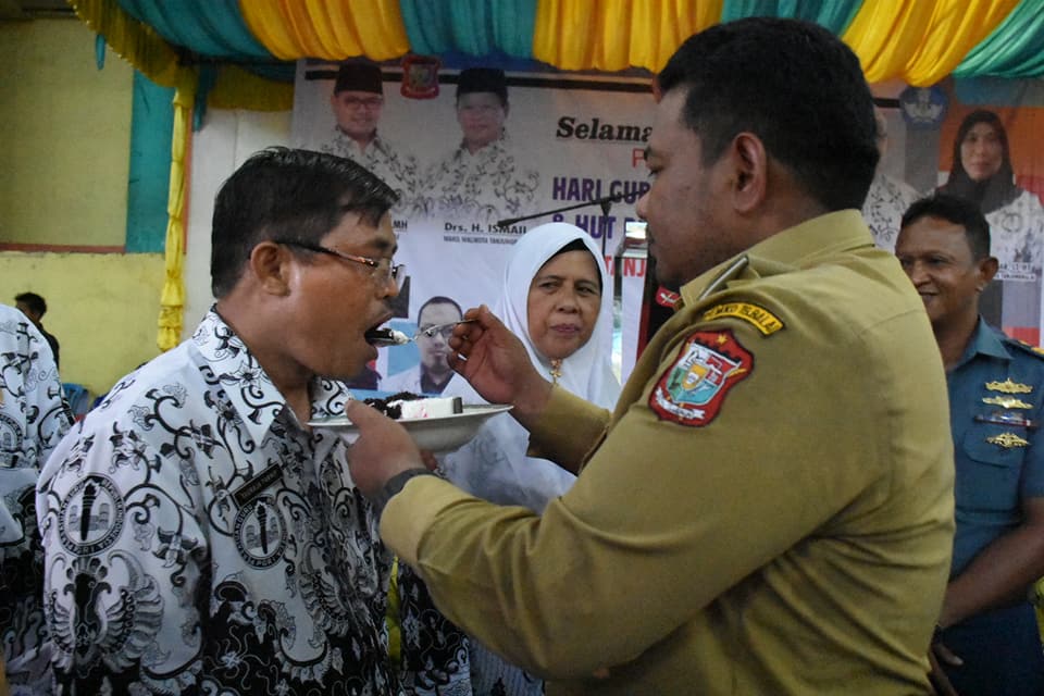 Usai acara Walikota H.M Syahrial didampingi Forkopimda Tanjungbalai, Dewan Penasehat PGRI H.Zulkifli Amsar Batubara, Seketaris Daerah Drs.Abdi Nusa, Kadis Pendidikan dan Pengurus PGRI memotong Tumpeng dan Kue dab langsung memberikannya kepada perwakilan guru yang hadir sebagai penghargaan bagi guru sekota tanjungbalai.