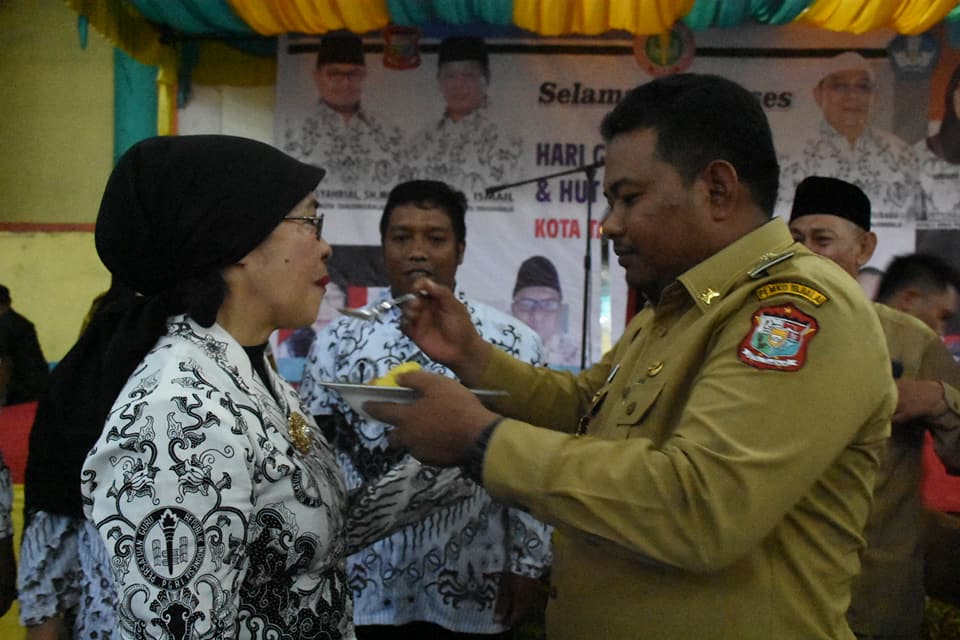 Walikota H.M Syahrial menyampaikan Peringatan Hari Guru Ke 72 tahun ini sebagai mana Tema yang diangkat “Membangun Pendidikan Karakter melalui Kesadaran Kolektif dengan Meningkatkan Disiplin dan Etos Kerja Guru”. Semua upaya tersebut dilakukan, mengingat urgensi penguatan karakter semakin mendesak seiring dengan tantangan berat yang dihadapi bangsa di masa mendatang. Visi yang harus dimiliki adalah, fakta bahwa para peserta didik saat ini adalah calon generasi emas Indonesia tahun 2045 mendatang, yang harus memiliki bekal jiwa pancasila yang baik guna menghadapi dinamika perubahan yang sangat cepat dan tidak terduga, Ujar H.M.Syahrial.