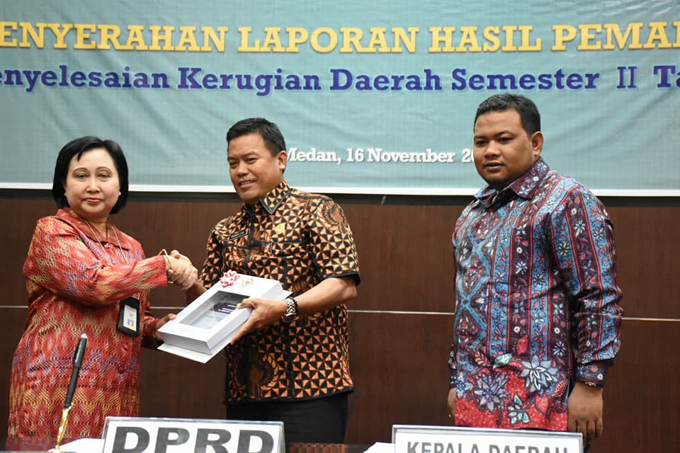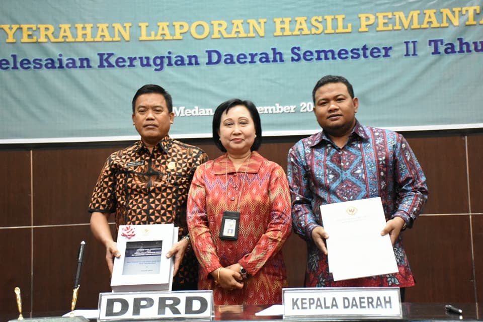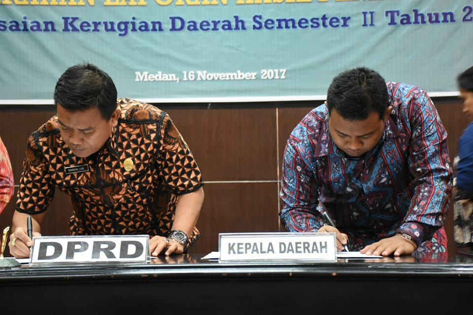 Badan Pemeriksa Keuangan Perwakilan Provinsi Sumatera Utara mengadakan kegiatan penyerahan Laporan Hasil Pemantauan Kerugian Daerah kepada seluruh Pemerintah daerah se Sumatera Utara bertempat di Auditorium Kantor Perwakilan BPK Provinsi Sumatera Utara (Kamis, 16/11). Acara yang dibuka oleh Kepala Perwakilan BPK RI Sumatera Utara Ambar Wahyuni. Walikota Tanjungbalai H.M.Syahrial SH, MH bersama Ketua DPRD Bambang Harianto SE menandatangani laporan hasil Pemantauan kerugian daerah sebelum diserahkan langsung oleh Kepala Perwakilan BPK RI Sumatera Utara. Hadir juga Kepala Inspektorat Susanto SE dan Seluruh Kepala Daerah, Ketua DPRD serta Kepala Inspektorat Se Sumatera utara.