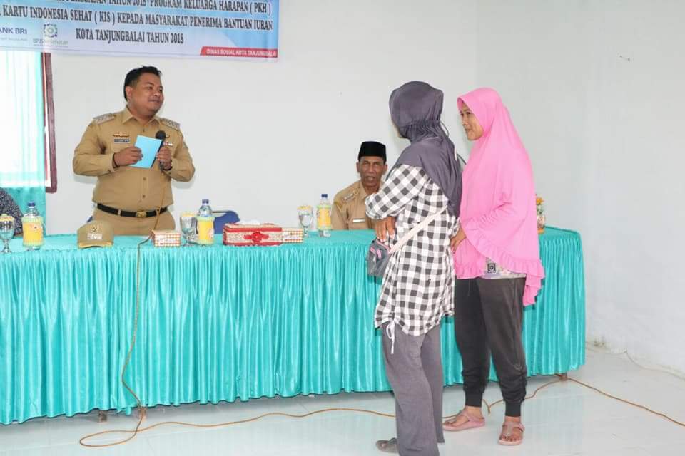 PKH Kecamatan Teluk Nibung melaksanakan penyaluran Buku Tabungan, Kartu Keluarga Sejahtera dan Kartu Indonesia Sehat (KIS) di Aula Kantor Camat Teluk Nibung (Selasa, 17/4/2018). Acara yang langsung dihadiri Walikota Tanjungbalai HM Syahrial SH, MH, Plt.Kadis Sosial M. Idris, Kabid Linjamsos, Pimpinan Cabang BRI Tanjungbalai, dan Camat Teluk Nibung.
